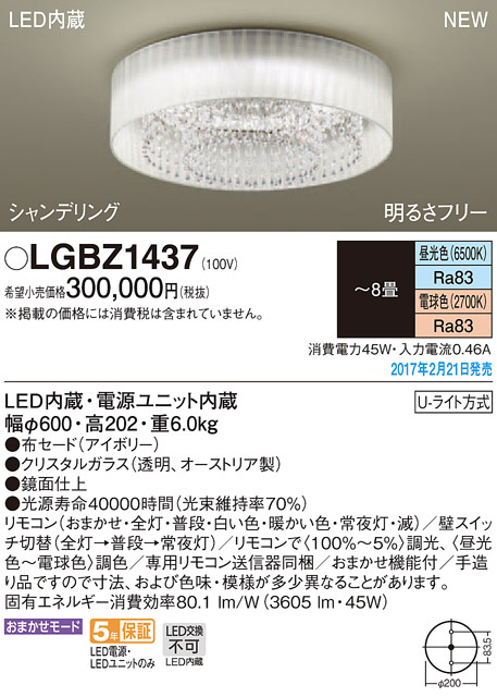 ●材質/色/仕上げ:布セード(アイボリー)・クリスタルガラス(透明、オーストリア製)・鏡面仕上