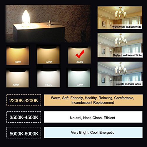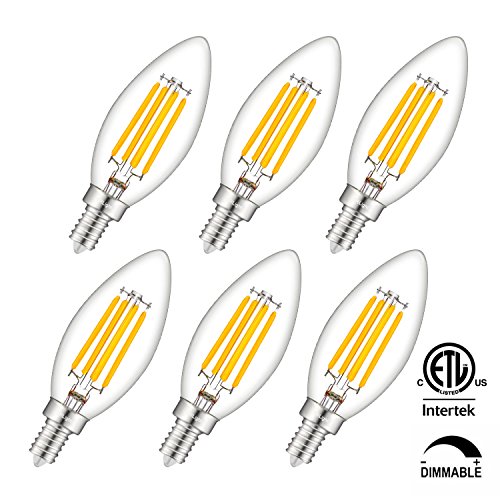- ★ TECHNICAL FEATURES - Dimmable, LED Filament Candle, E12 Candelabra Base, AC 110V-130V, with Overload Protection, Short Circuit Protection and Over Temperature Protection, The Best Recommended Dimmer is Lutron DVCL-153P-WH Diva