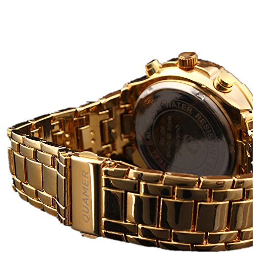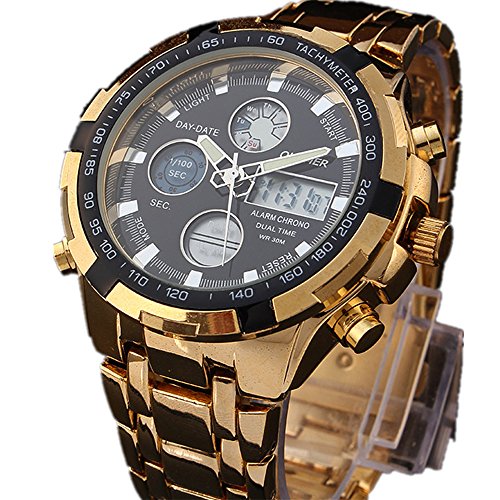 -. Title : QUAMER 165 Quartz Sport Muti-Functional Wrist Watch with Analog&Digital Time Display (Gold+Black)