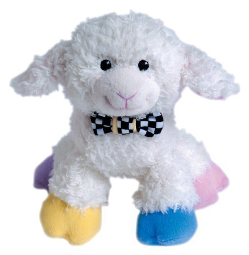 Soft cuddly plush lamb has pastel velveteen hooves.