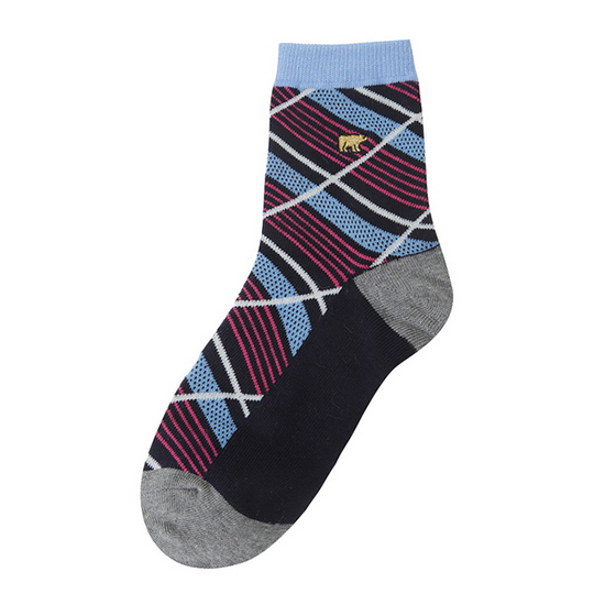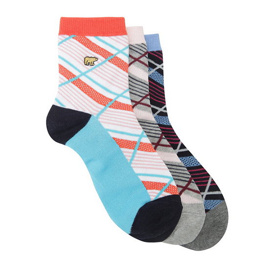 - 배색의 사선 체크로 세련된 여성 3족 SET 양말.