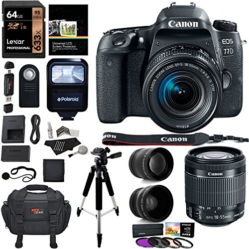 -. Title : Canon EOS 77D Camera, EF-S 18-55 IS STM Lens, Lexar 64GB Memory, Ritz Gear Premium SLR Camera Bag, Polaroid Filter Kit, Flash and Accessory Bundle