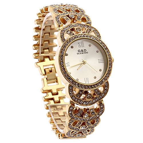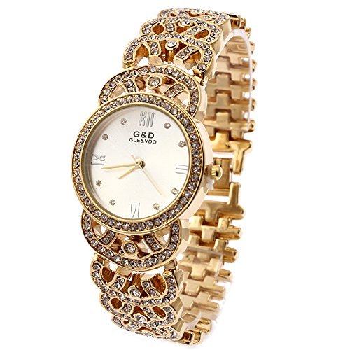 -. Title : G&D Women Gold-Tone Stainless Steel Rhinestone Watches Fashion Luxury Wrist Watch