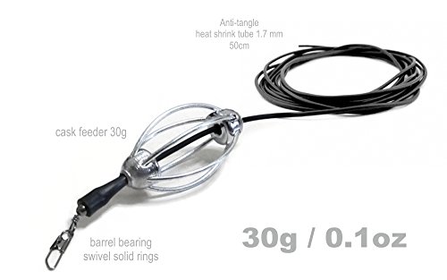 Studio : Elfishes Publisher : Elfishes Binding : Misc. Product Description Heat shrink tube 1.7 mm - 50cm Metal Cask Feeder - 30g / 6cm Barrel bearing swivel solid rings - #4 Hair rig - Hook #4 This is a normal carp bait feeder, but having the form of a cask, it does not permit the bait to fall easily. One of the most popular carp tackles for using a safe rig with anti-tangle tube. This safety clip rig ejects the lead easily, should the main line break or snag up. The other bonus of this rig is that you can change the spring in seconds should you wish to. The rig is very easy to set-up. Pass the main line through the rig tube, pointed end last. The end of the rig tube push the pointed end of the tube into the pointed end of a tail rubber. On most clips there is a retaining ridge that the swivel must 'click' past to ensure the lead is released, rather than have just the swivel being pulled out of the body of the clip. Then pull the tail rubber back off the sections of the lead clip to expose the tag of the lead clip. 0