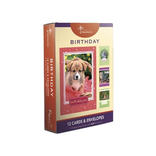 Assorted 12 Pack BOXED Animal BIRTHDAY CARDS Bulk For Kids WITH KJV SCRIPTURE - Animals of Dog, Cat, Rabbit and Deer Greeting Cards BDAY for Her for Him
