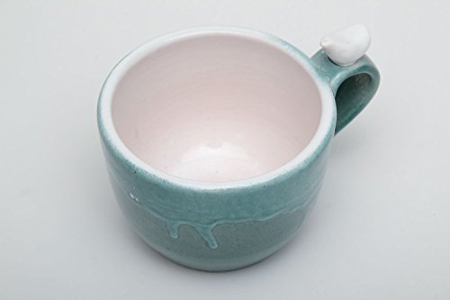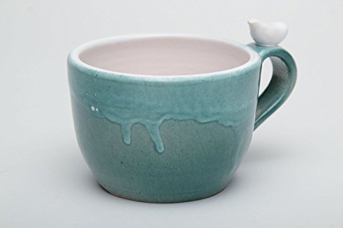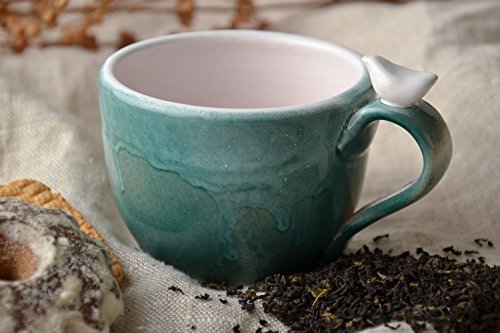 -. Feature : DETAILS - This cup with a birdie on the handle is a beautiful and convenient ware for having your favorite hot drink. The product is made on a pottery wheel, covered with enamel and glaze. The mug passed kilning at the temperature of 1000 degrees Celsius. The birdie on the handle of the cup "sits" not for nothing. It is convenient to put a finger on it when you drink tea or coffee. The cup can be created in any other color and size. /