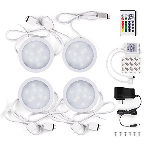 Albrillo LED Puck Lights with Remote Control, Dimmable Color Changing Under Cabinet Lighting, 4 Pack