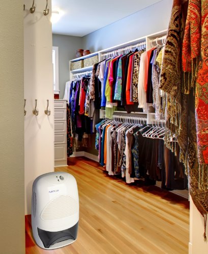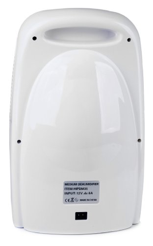 This isn't a watered-down version of a bigger dehumidifier - it's a highly effective mid-size machine in its own right, built around the powerful and whisper-quiet Peltier technology. Because Peltier technology works with no moving parts, we managed to design and develop our dehumidifier as a compact appliance: small, lightweight, low on energy consumption, powerful, effective at drying up musty rooms, and, with all that, a long lifespan. Rated at being suited for spaces up to 2,200 cubic feet, our mid-size dehumidifier is the perfect tool to extract moisture and dust particles from stagnant areas and mildew- and mold-stricken rooms. From bathrooms to laundry rooms to bedrooms to antique cars to boats, it rids the air of mustiness and unpleasant odors while quietly pulling in excess humidity at a rate of up to 20 ounces per day at 86 Degree Fahrenheit and 80% relative humidity. The Ivation mid-size dehumidifier is fitted with a removable water reservoir with a capacity of two full liters. This spares you the hustle of emptying out an overflowing water tank every day, as it can hold approximately 3-days' worth of dehumidifying action. Our dehumidifier is also programmed to shut off automatically once it has reached capacity. An indicator light will go on to remind you to empty the tank out. A 12v DC power adapter is included, and power consumption peaks at 72w, making this an efficient and reliable unit with the comfortable dimensions of 81/2" x 14" x 63/4".Feature
