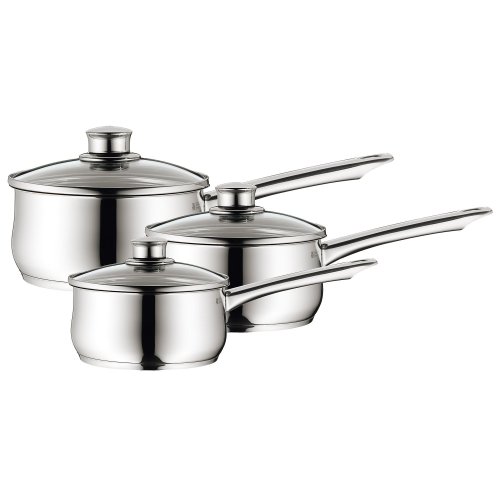 -. Feature : Material: spülmaschinenfest, poliert, Cromargan Edelstahl Rostfrei 18/10, hitzebeständiges Glas / Inhalt: Stielkasserolle 16 cm, Stielkasserolle 18 cm, Stielkasserolle 20 cm / Mit Steckdeckel aus Glas