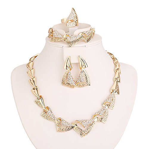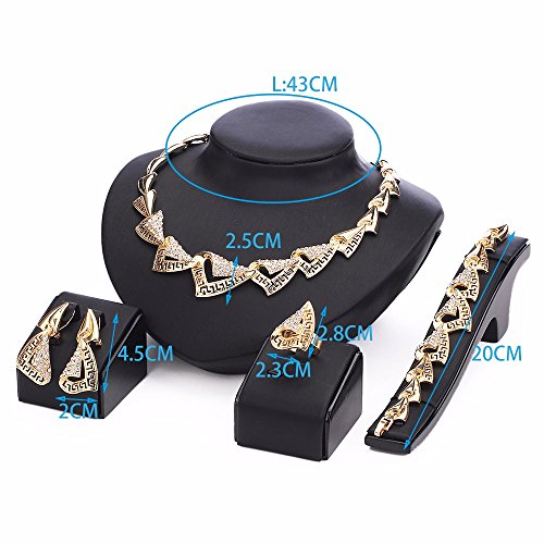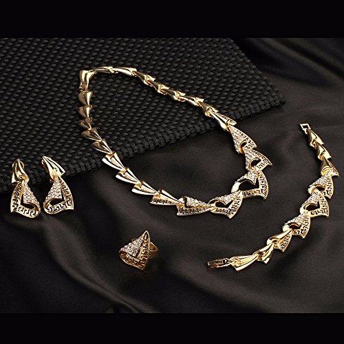 -. Feature : 2015 New Arrival Jewelry for Celebrition, Costume, Party, Wedding, Show / Jewelry Sets of necklace & bracelet & ring & one pair of earrings / Gold-plated is harmless and hypoallergenic for human / Smooth cutting technolgy for Crystal surface / Chain length: 16.93inch, bracelet length: 7.48 inch