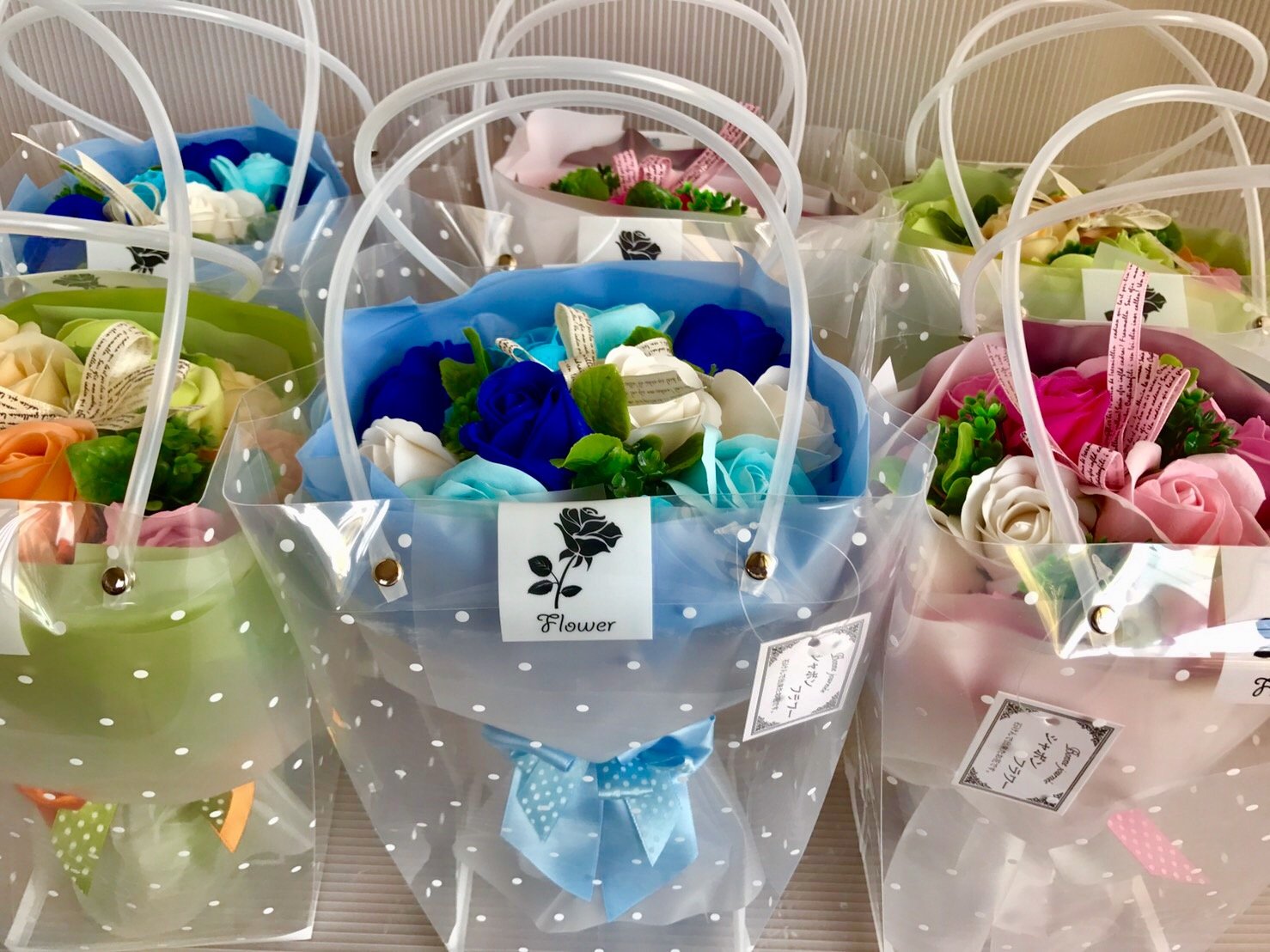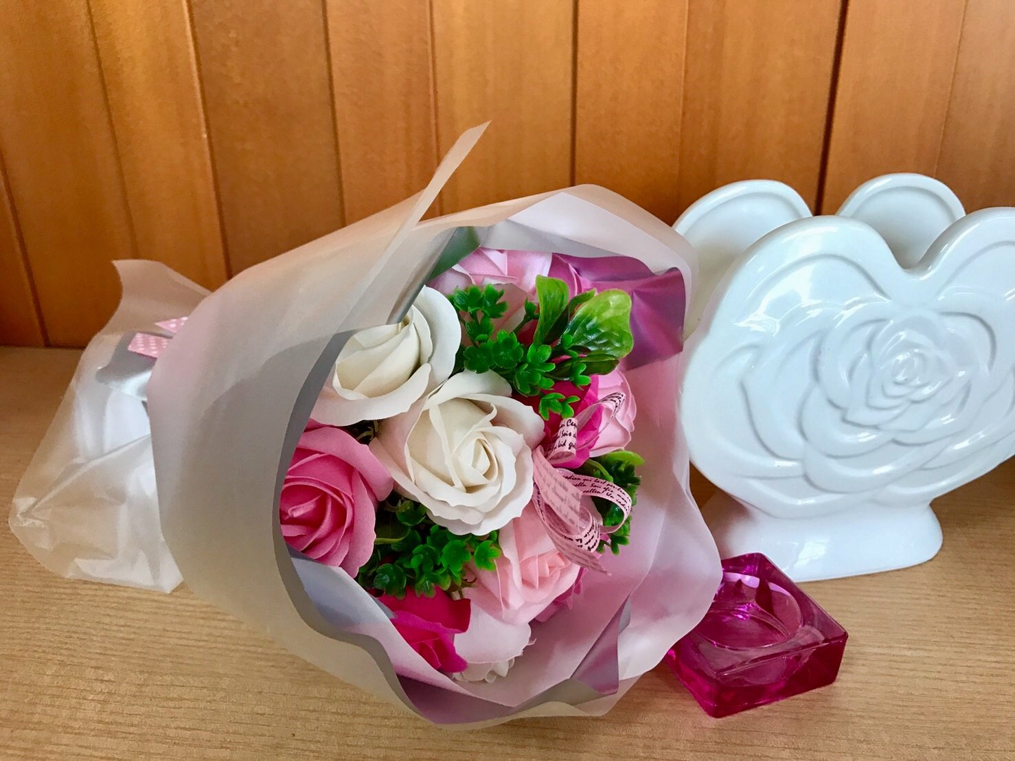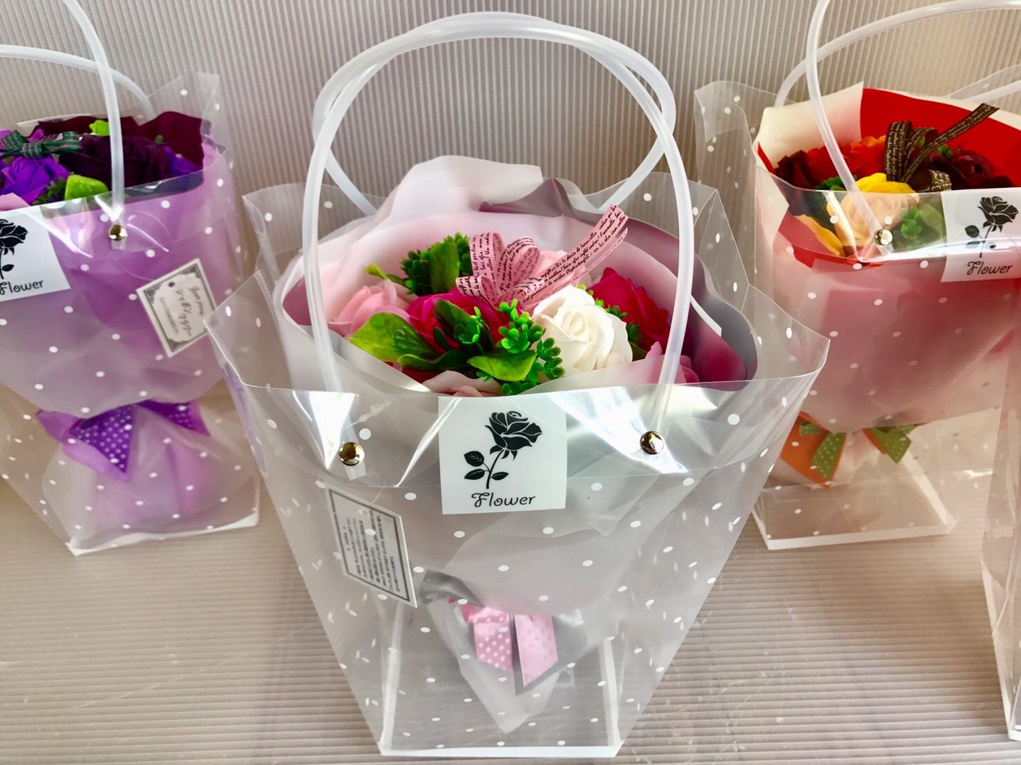 Since the bouquet is in a gift bag, various decorating methods can be done.