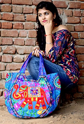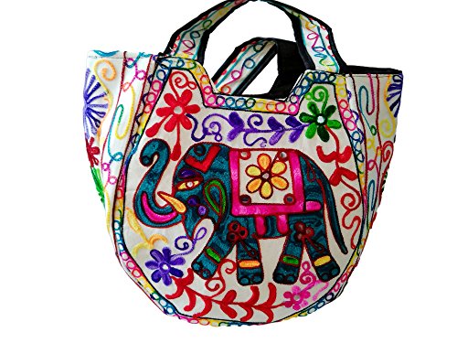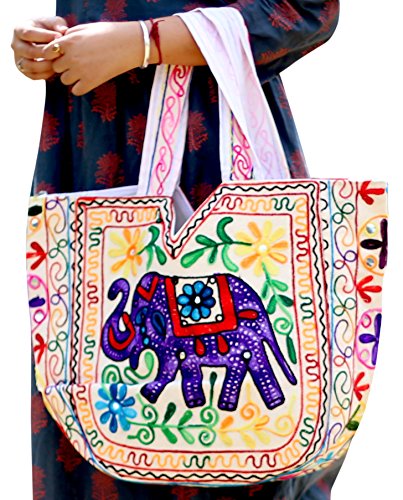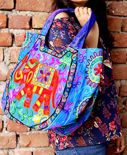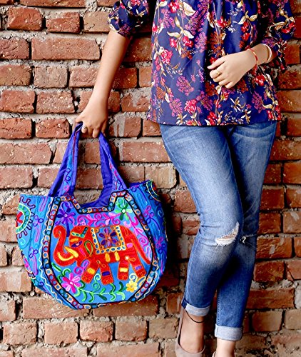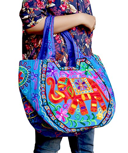 -. Feature : Authentic Keha Creations Product - Exquisite Handmade cotton With Elephant Embroidered - Zipper On Top / Bright Organic Cotton Fabric Quilted Free Motion Style in High Contrast. / Width 18 inches x Length 13 inches / Boho Shoulder Bag - Spacious, roomy , functional, Shopping, beach and parler / Hippie Hobo Bag For Casual Wear and A zippered inside pocket