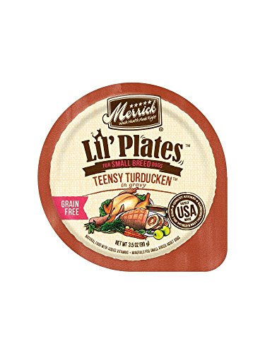 The Best Dog Ever Deserves Merrick. Merrick is known for, in options that are easily digestible, convenient and right-sized portions for small breed dogs. Natural food with added vitamins and minerals for small breed adult dogs. All Merrick Grain Free recipes are cooked in the USA, one batch at a time, with no ingredients from China. Recipes contain no corn, wheat, soy or gluten ingredients. You'll receive 3 Different Flavors including: (4) Teensy Turducken, (4) Teeny Texas Steak Tips, (4) Rascally Rabbit Stew. (12 Packs Total, 4 of each Flavor, 3.5oz each).Feature