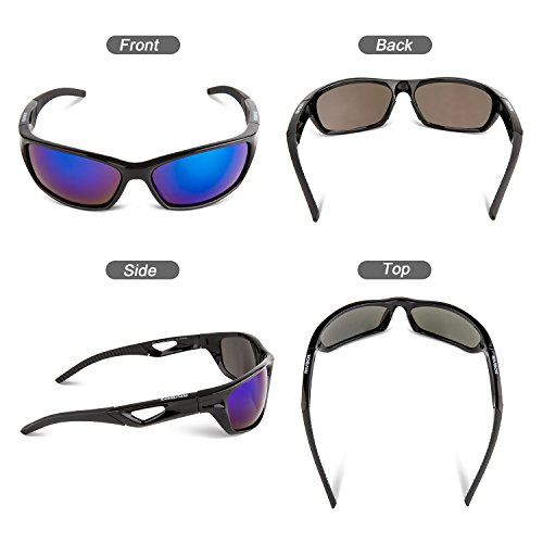 TAC Polarized and Mirror Coating Lens- Offer 100% UVA&UVB Protection against the sunlight filtering 100% of all UVA/UVB/UVC and Harmful Blue Light Up to 400nm.Restore true color, eliminate reflected light and scattered light and protect eyes perfectly.
