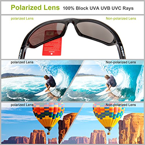a.TAC Polarized Lens- Offer Top UV Protection filtering 100% of all UVA/UVB/UVC and Harmful Blue Light Up to 400nm.Restore true color, eliminate reflected light and scattered light and protect eyes perfectly.The lens of RIVBOS Polarized Sunglasses reduce glare reflected at some angles off shiny non-metallic surfaces such as water.They allow wearers to see into water when only surface glare would otherwise be seen,and eliminate glare from a road surface when driving into the sun.It's good to wear our sunglasses while u driving finishing and all kind of outdoor sport activities.