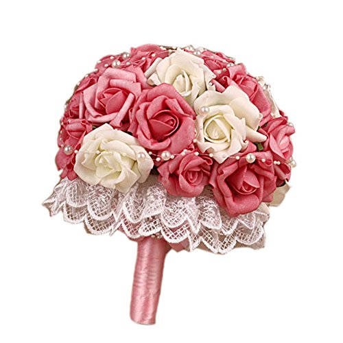 - Title : Engerla Handmade Pearl Holding Wedding Bride&Bridesmaid Bouquet Coral