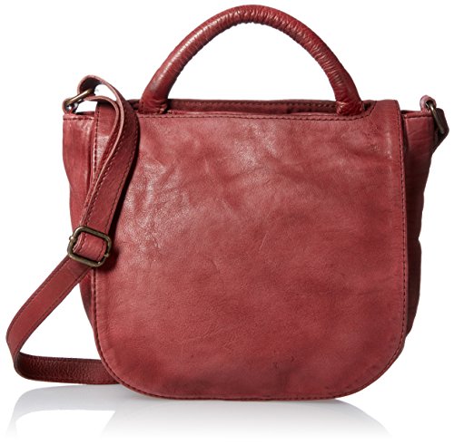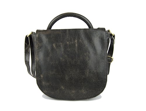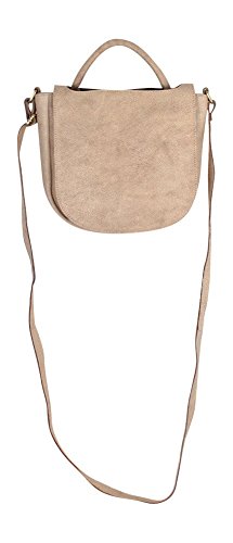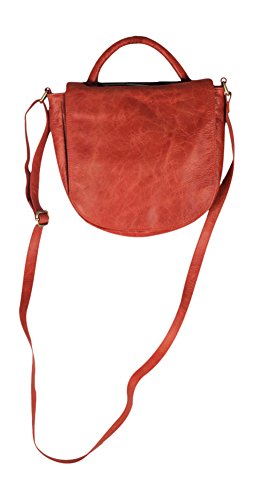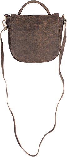 100 percent leather 7/8 wide rolled carry handle 5/8 wide adjustable cross body strap- 25 maximum 12 1/2 min drop recessed top zip entry with leather pull exterior front features flap with magnetic snap closure that fits over carry handle exterior back features open slit pocket interior front features 5 credit card slots and open slit pocket underneath credit card slots interior back features zip pocket patterned lining