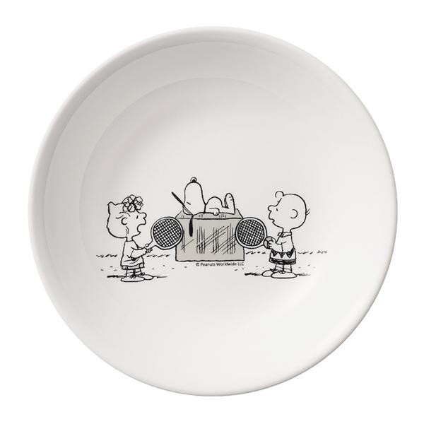 モノトーンで落ち着いた雰囲気のスヌーピーの食器シリーズ。欠け・破損に耐性がある全面積層強化ガラス製です。