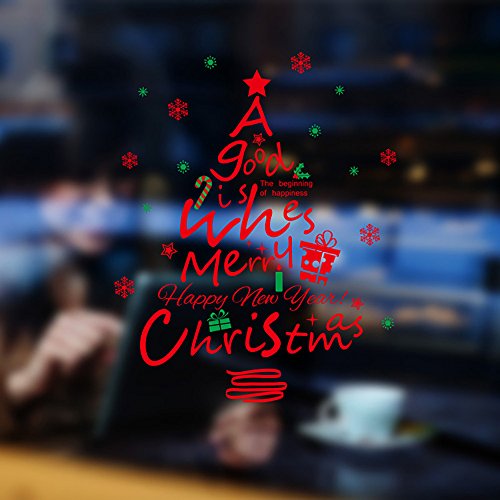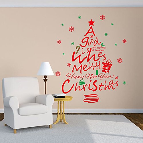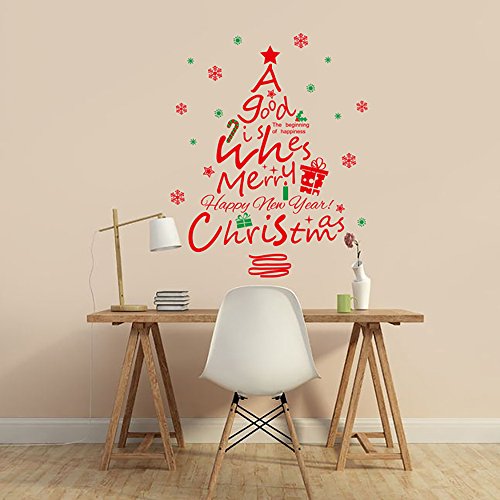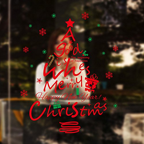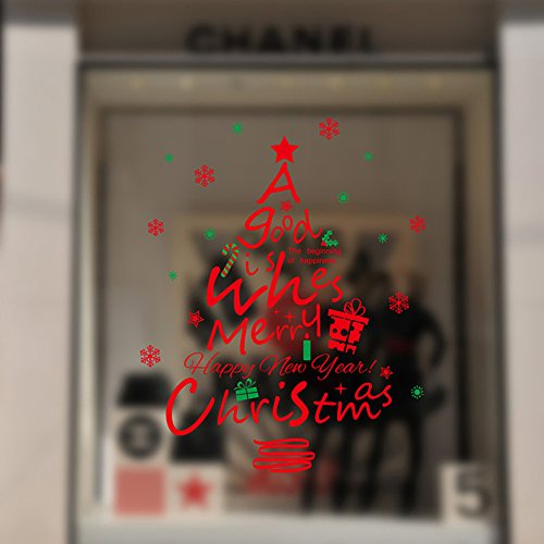 Christmas Wall Decal- Snowflakes Gift Boxes Christmas Sayings Tree Decorations Peel and Stick Sticker for New Year Window Door Home Wall Decor