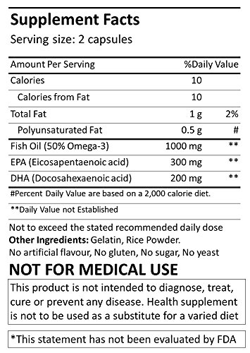 Admega-1000 capsules provides high omega-3-fatty acids contents (50%; 300mg EPA and 200mg DHA) as compared to regular softgels (30% 180mg EPA and 120mg DHA)