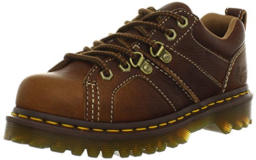 The upper and sole are sewn together, not merely glued, like many footwear constructions. The original Dr. Martens air-cushioned sole, providing underfoot comfort and durability since 1960. It is oil- and fat-resistant, tough and offers good abrasion and slip resistance. A waxy and attractive two-tone featured surface, with a medium soft handle.Feature