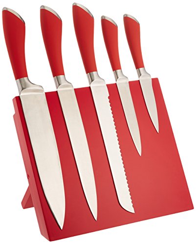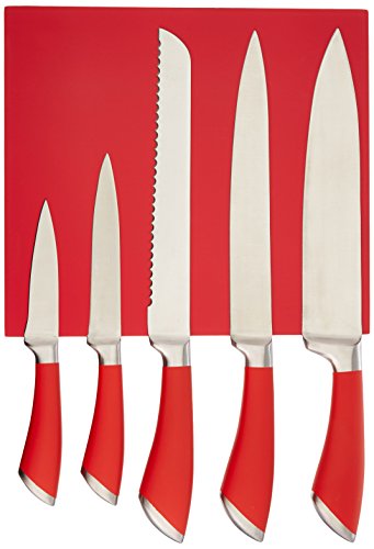 Red Knife Culinary Set - Improved 2.5mm - Well Balanced 6 Piece Stainless Steel - Red Magnetic Cutting Board