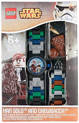 -. Binding : Watch -. Brand : LEGO -. Color : Brown -. Department : boys -. EAN : 0812768020400 -. Feature : Round watch featuring Star Wars motif on dial, Arabic hour markers, and multicolored link bracelet / Plastic case with acrylic dial window / Japanese quartz movement with analog display / Push-and-slide-clasp closure / Water resistant to 50 m (165 ft) -. Label : LEGO -. Manufacturer : LEGO -. Model : 8020400 -. MPN : 8020400 -. PackageQuantity : 1 -. PartNumber : 8020400 -. ProductGroup : Watch -. ProductTypeName : WATCH -. Publisher : LEGO -. Studio : LEGO -. Title : Lego Kids' 8020400 Star Wars Han Solo and Chewbacca Watch with Two Mini Figures -. UPC : 812768020400