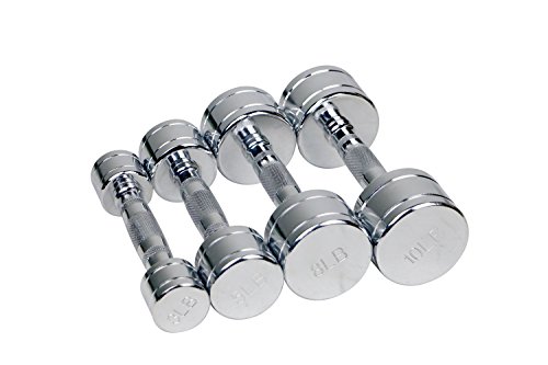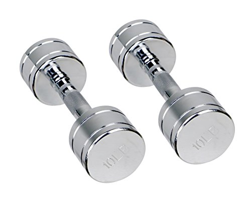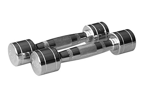 Gymenist Set of 2 Round Chrome Dumbbells with Chromed Metal Handles, Pair of 2 Heavy Dumbbells Choose Your Weight Size