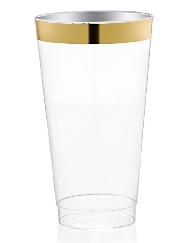- The polished gold rimmed plastic cups are fancy and elegant, the perfect choice for upscale occasions, dinner parties, wedding, holiday etc.