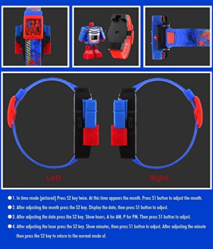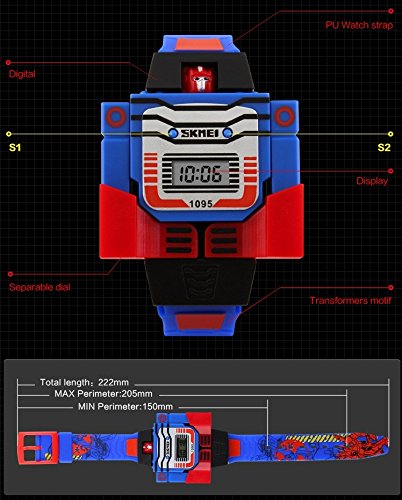 -. Title : TONSHEN Kids LED Digital Cartoon Watches Sports Transformation Robot Toys Children's Watch,Blue