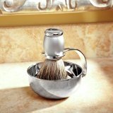 -. Title : Chrome Plated Shaving Shave Soap Dish with Removable Badger Brush Set