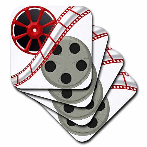 3dRose Two Movie Reels With Movie Tape Down The Middle Illustration - Ceramic Tile Coasters, set of 4 (cst_222687_3)