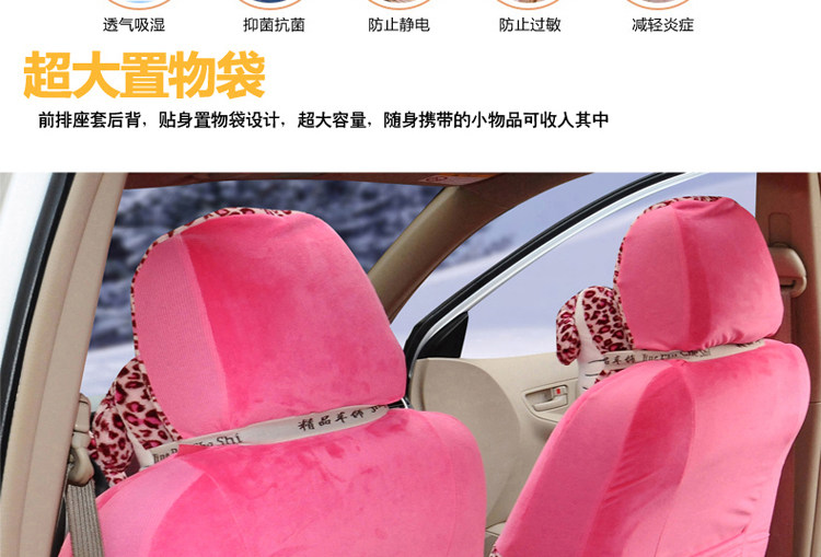 Two sets of front seat backrest cover 2, cover a rear seat backrest cover one, caps 4, a steering wheel cover. 2 headrest, seat belt cover 2, cover a stand (stand has set aside the mouth), handbrake cover a mirror set a