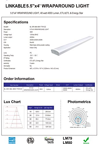Energy saving - Efficient LED delivers 4000 lumens using just 48watts of energy. Easy and fast installation - Can be surface mounted to walls and ceilings, Hassle-Free Mounting.