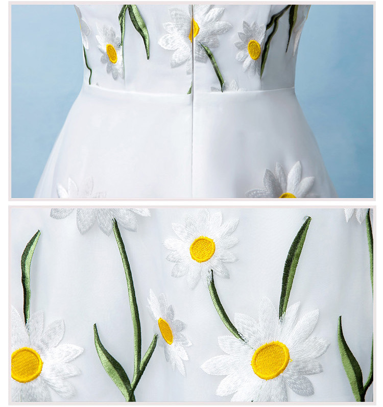 コード刺繍が美しいミディアム丈のノースリーブワンピース。
