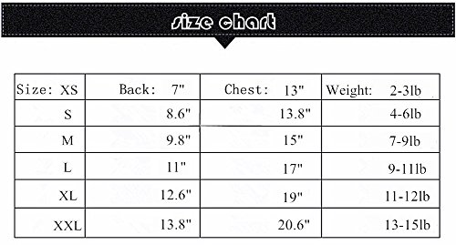 -. Binding : Misc. -. Brand : ZeroTone -. Feature : Size XS, back: 7", chest: 13", fit for pets about 2-3lb.(The size of the scratches style and holes style is not the same, so please be careful.) -. Label : Zerotone -. Manufacturer : Zerotone -. PackageQuantity : 1 -. ProductGroup : Pet Products -. ProductTypeName : PET_SUPPLIES -. Publisher : Zerotone -. Studio : Zerotone -. Title : Zerotone Classic Vintage Lapel Denim Coat Vest for Small Pet Dog Cat 2 Styles XS-XXL