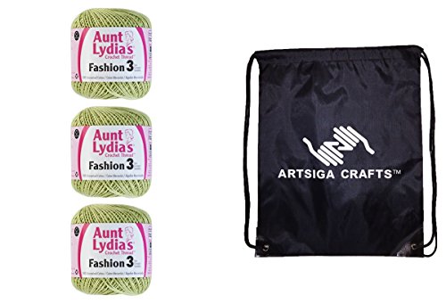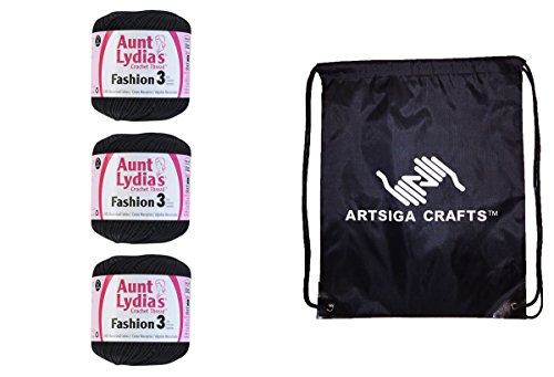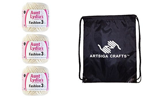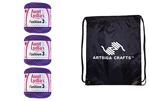 -. Feature : Bundle includes 3-Pack Aunt Lydia's Fashion Crochet Thread Size 3 with 1 Artsiga Crafts Project Bag / This high luster mercerized cotton crochet thread is perfect for crochet projects both large and small; suitable for fashion apparel and accessories / Features: size 3, 100% mercerized cotton thread; put-up Solids: 150yd/137m; Metallics: 100yds/91m; Crochet Hook: 3D or 4E; Knitting Needles: US2 3 US; Crochet Gauge: 16 21dc=4in/10cm. Knitting Needles: 27 32S=4in/10cm / Care: machine wash gentle (max. temp 104F/40C), roll in towel & block, do not bleach, do not dry clean, do not iron; Dyelotted: we try but are not always able to match dyelots. Available in a variety of colors / Artsiga Project Bag measures 13 x 16 in.; inches includes a drawstring for easy closure and shoulder straps for easy carry-on and keeping projects on-the-go