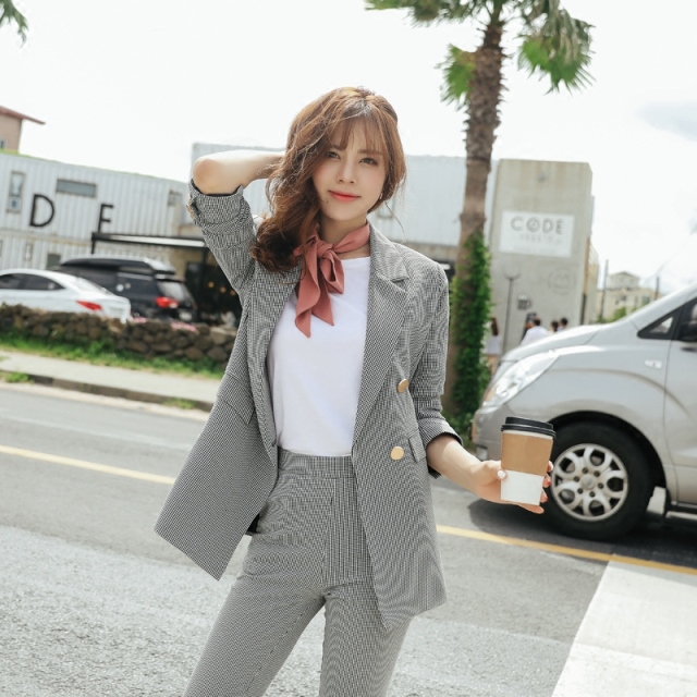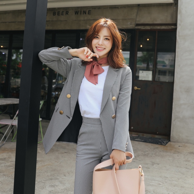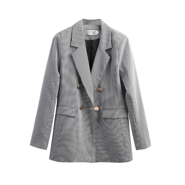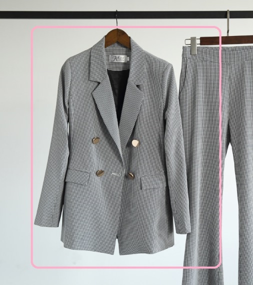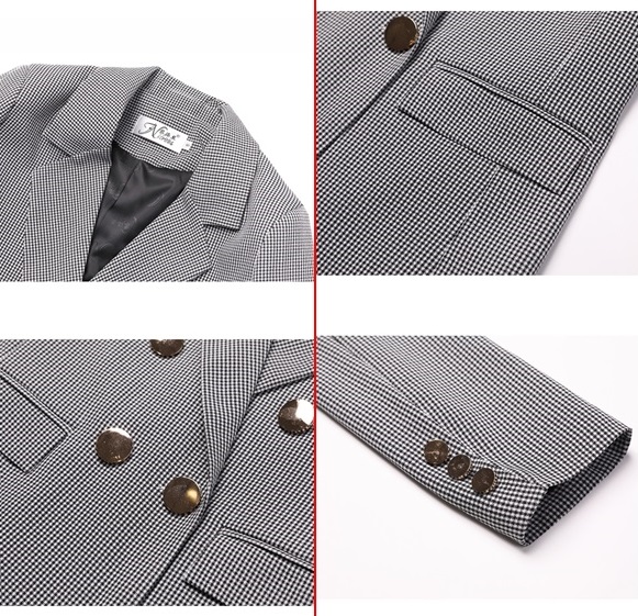 金ボタンとジャガード柄がポイント