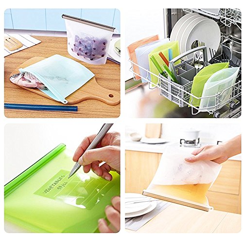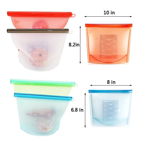 -. Binding : Health and Beauty -. Brand : Standard -. Feature : PACKAGE: 2 x 50 OZ & 2x30 OZ bag, 4 plastic clips.2 LARGE HERMETIC PRODUCE SAVER BAGS 50 OZ/1.5L/6 cups to store family portions & meal prep; 2 SMALL BAG 30 OZ/1L/4 cups for snacks, fruits & veggies, sandwiches. -. IsAdultProduct : 0 -. Label : Standard -. Manufacturer : Standard -. ProductGroup : Health and Beauty -. ProductTypeName : HEALTH_PERSONAL_CARE -. Publisher : Standard -. Studio : Standard -. Title : Reusable Silicone Food Bag Preservation Storage Container Airtight Seal Cooking Bag Food Grade Storage Bag Vegetable Meat Milk for Freeze Steam Heat Microwave Dishwasher