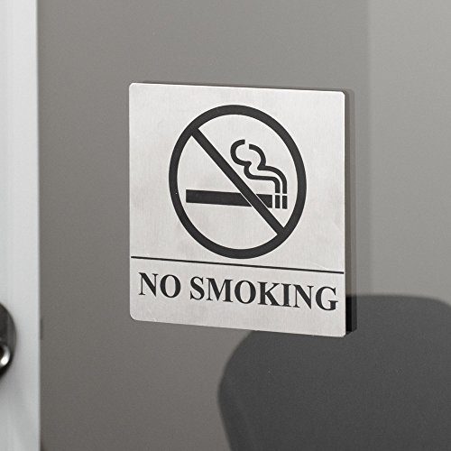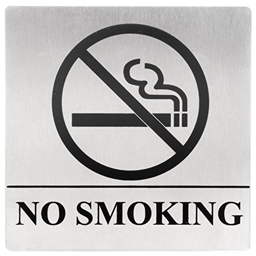 Stylish "No Smoking" Sign, Self Adhesive, 5" x 5" Stainless Steel