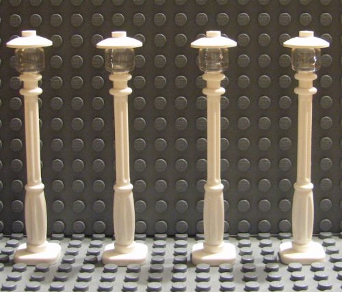 -. Title : L.E.G.O Street Light Set of 4 - White Post with Clear Bulb & White Cover