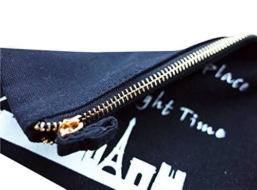 -. Title : AvecToi "Right Place Right Time" Small Canvas Cosmetic Bag Travel Zipper Pouch