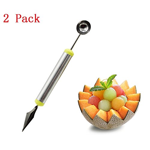 Studio : Gfortune Publisher : Gfortune Product Description Feature: LARGE HANDLE AND SCOOP -makes this make this tool extremely easy to use. 2 IN 1 DESIGN- as a fruit knife the V-shaped end of the tool has jagged teeth to quickly puncture out the sides of any melon, turning the melon into a fun, cute fruit bowl; as a spoon makes easy to dig a ball of any fruit and ice cream. MADE OF HIGH QUALITY STAINLESS STEEL -to ensure that the tool can carve, core, cut, and scoop out any type of melon. 0