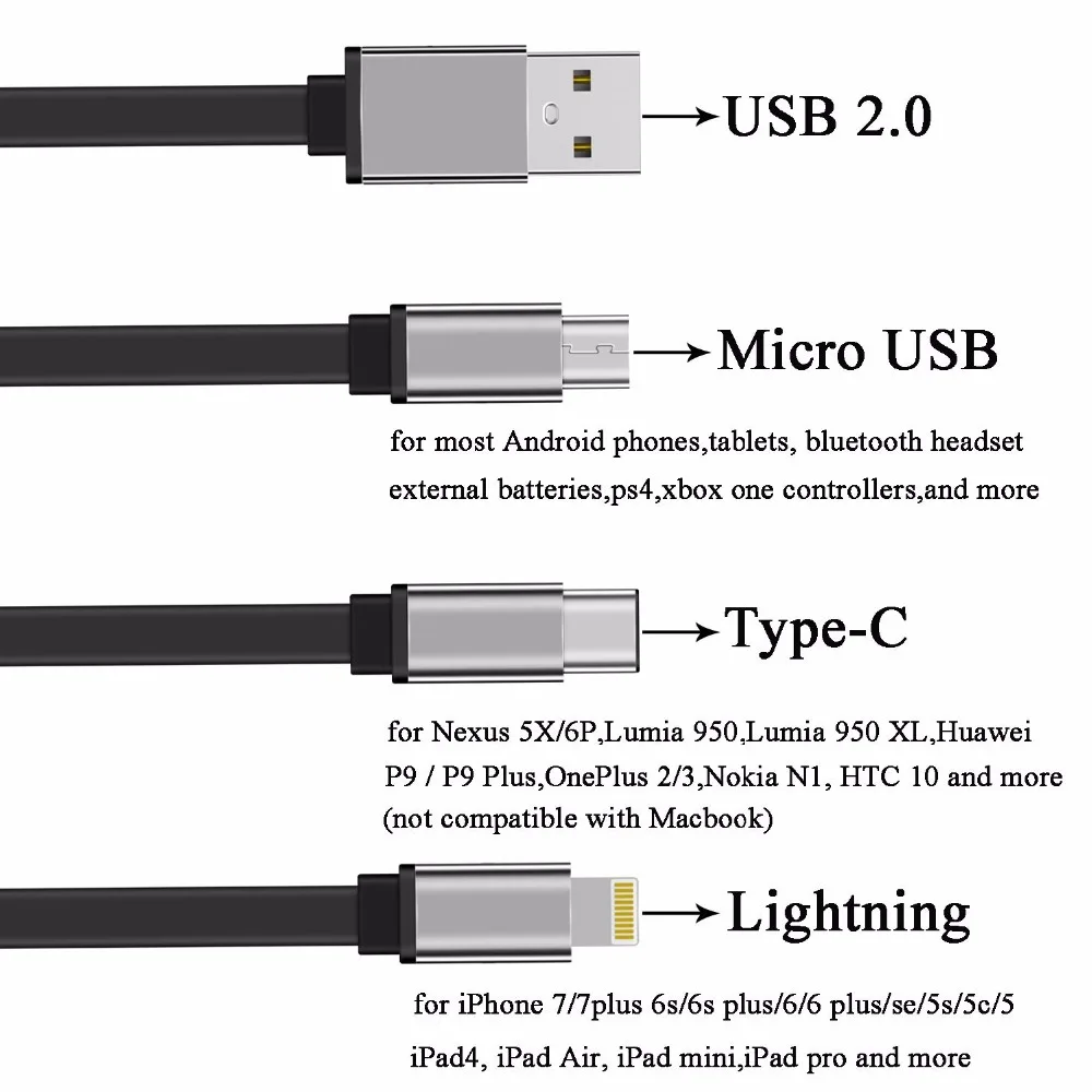 Type:Micro USB,Lightning,Type -c