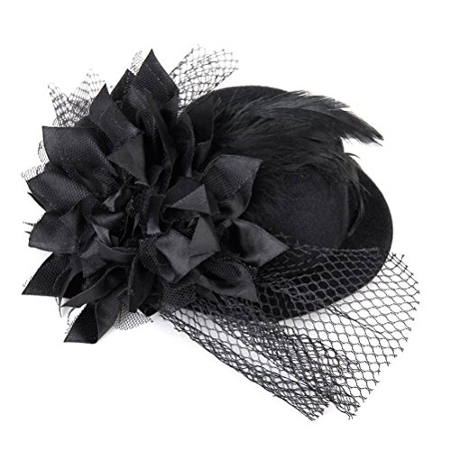1 * Kalevel® Flower Hair Clip Feather hair clip Punk Mini Top Hat With Clips and Veil for Girls WomenFeature