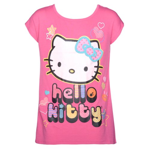 Trendy and fun Hello Kitty graphic sparkle short sleeve top just for your little girl. Perfect for spring or summer with fun details of sparkle finish on kitty and light sheer polka dot fabric on back of top.