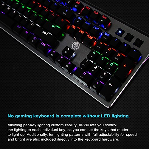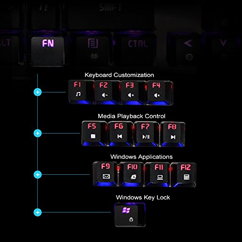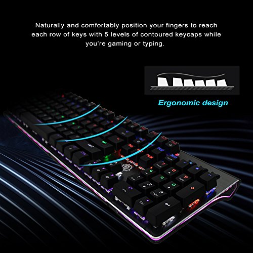 -. Feature : Benss Mechanical Keyboards just feel better and will make you a more efficient gamer / typist / [Blue Mechanical Switchs] "Blue Mechanical Switchs, dedicated multimedia keys, Great gaming performance with tactile feedback and an audible click for typing / [Cool & Vibrant Backlighting] Support 10 different kinds of LED effects, to improve visibility in low light conditions and intense fighting enthusiasm / [Spill-Resistant and Durable] With sturdy aluminium base, attentive waterproof design, 50 million keystrokes,high quality craftsmanship is enough to support your long-term work or game / [Ergonomic 5-Level Contoured Design] This designed ergonomically to provide maximum comfort for extended gaming sessions