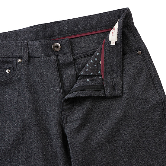 - 조직감있는 멜란지 원단을 적용하여 캐주얼한 남성 팬츠.