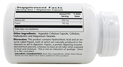 Studio : Solaray Publisher : Solaray Binding : Misc. Product Description Solaray HCL with Pepsin is a digestive support formula featuring a combination of ingredients intended to provide digestive support. - Supports healthy stomach acidity