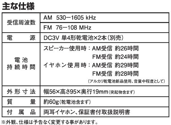 持ち運びしやすいコンパクトなポケットラジオです。